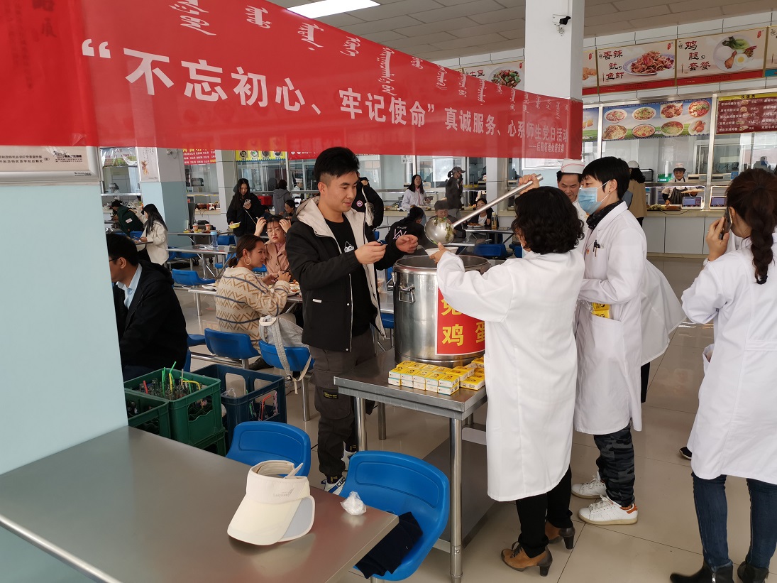 活动以“为师生送温暖”为主题,向就餐师生提供免费的鸡蛋汤和餐巾纸,为beat365官网师生在深秋10月送去由内而外的温暖。活动场所设在学生餐厅二楼。中午11点30分至12点30分,后勤管理处党支部全体党员按照食品卫生安全流程要求,身着餐厅工作服,佩戴口罩为师生提供热情服务,现场师生都报以开心的微笑和一句暖心的“谢谢”。