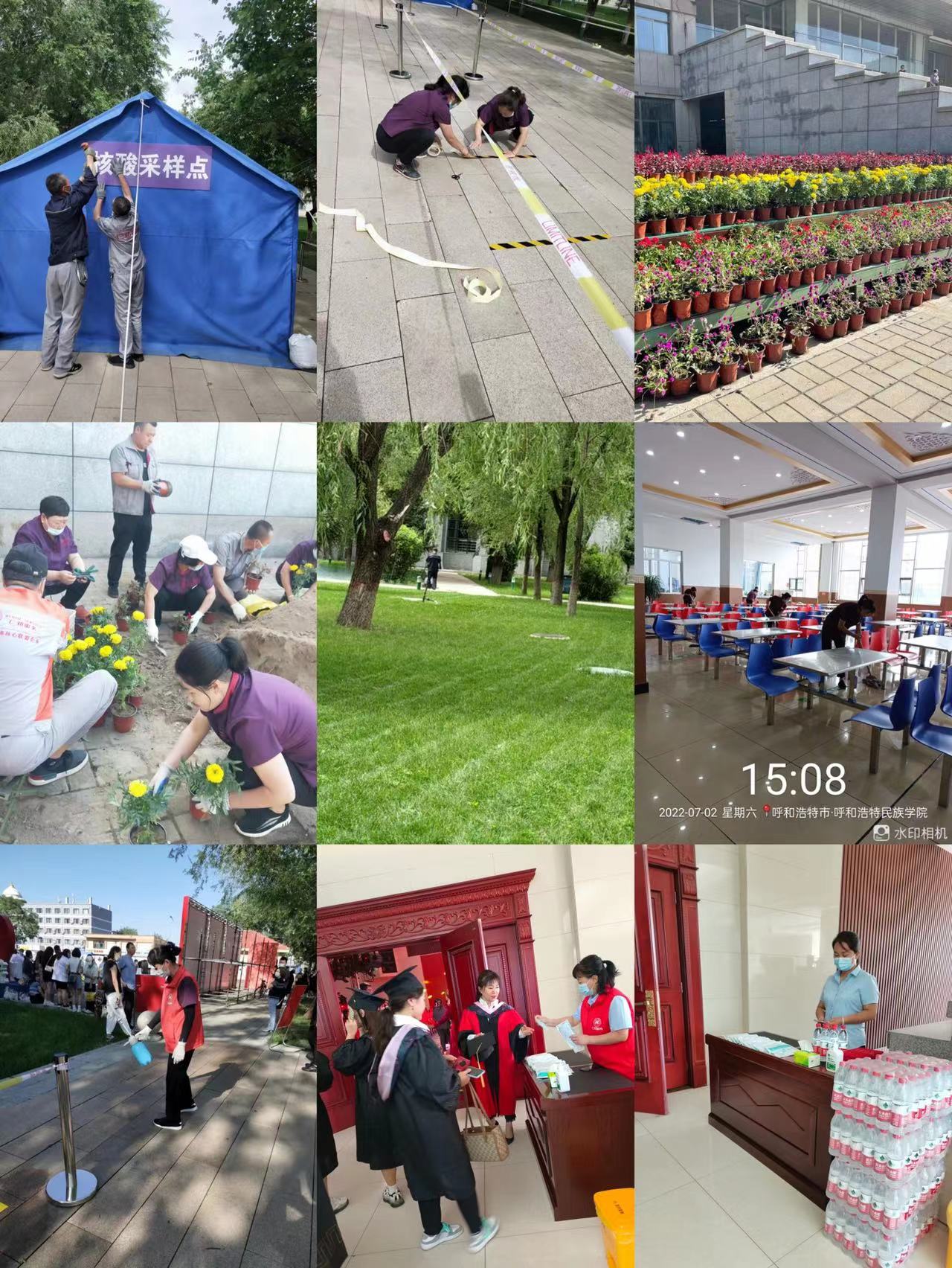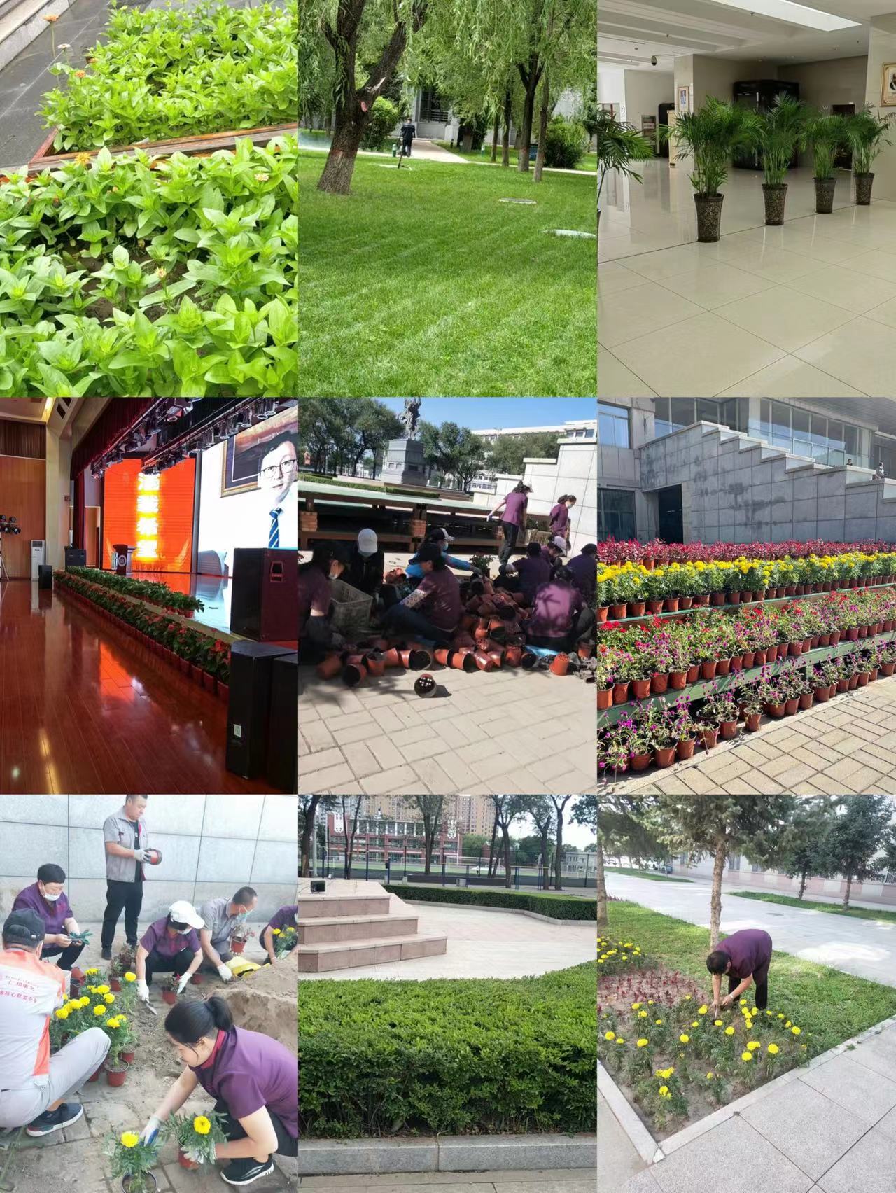 为打造美好校园环境,营造浓厚毕业氛围,物业服务中心根据校园特色在都林楼台阶两侧摆放千日红、美女樱、鸡冠花、姬小菊4000余盆,从倒载到摆造型都凝聚着物业员工对毕业生浓浓的祝愿。主会场图书馆2楼报告厅摆放绿萝100盆、火鹤50盆,夏威夷竹10盆。