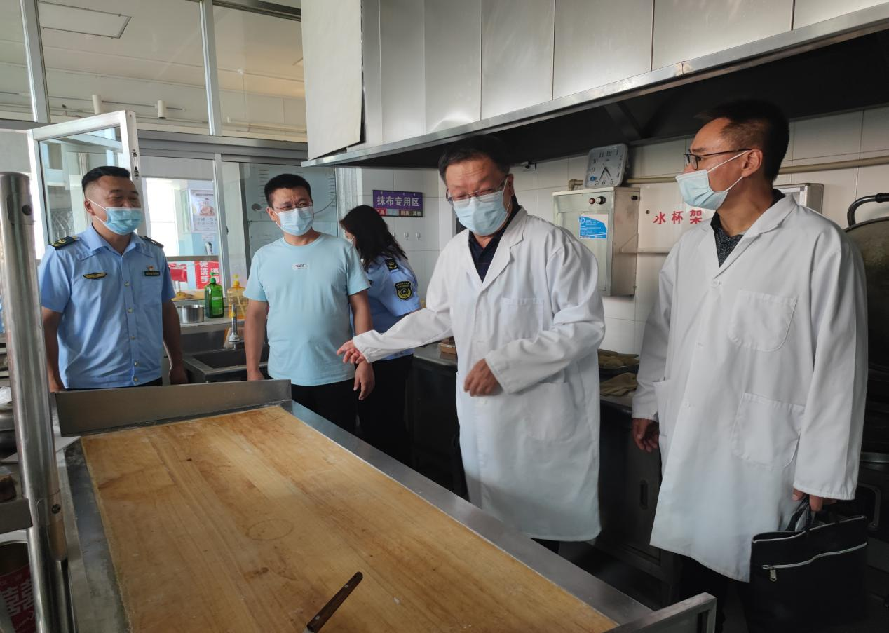 会后,学校党委委员、副校长刘瑞鸿同志及后勤管理处负责人陪同新城区市场监督管理局海东路市场监督管理所负责同志对beat365官网食堂主体资质、人员健康、环境卫生、食品采购验收、粗加工、烹饪、备餐、餐饮具消毒、饮用水使用、食品摆放、仓储温湿度控制、食品留样、废弃物处置、不合格品处置、自查自纠等经营行为进行了实地专业指导。同时,还着重指导了学校食堂“日管控、周排查、月调度”制度建设等重点工作开展情况。