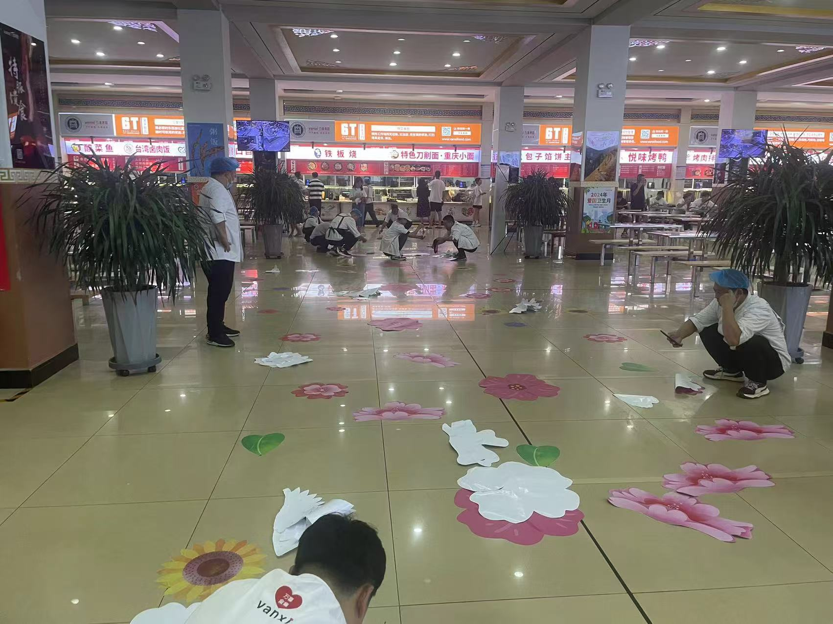 物业管理科、绿化科及中海物业公司工作人员对各自所辖区域内垃圾桶、垃圾房及垃圾中转站等公共场所全面打扫,及时清洁迎新现场、办公区域、教室和学生公寓公共区域卫生。持续优化绿化,购置摆放绿植和花卉,清洗宣传标志物、文化长廊橱窗及物资搬运工作。在迎新现场为新生及家长提供免费饮水处和搬运行囊车辆,全方位保障师生需求。