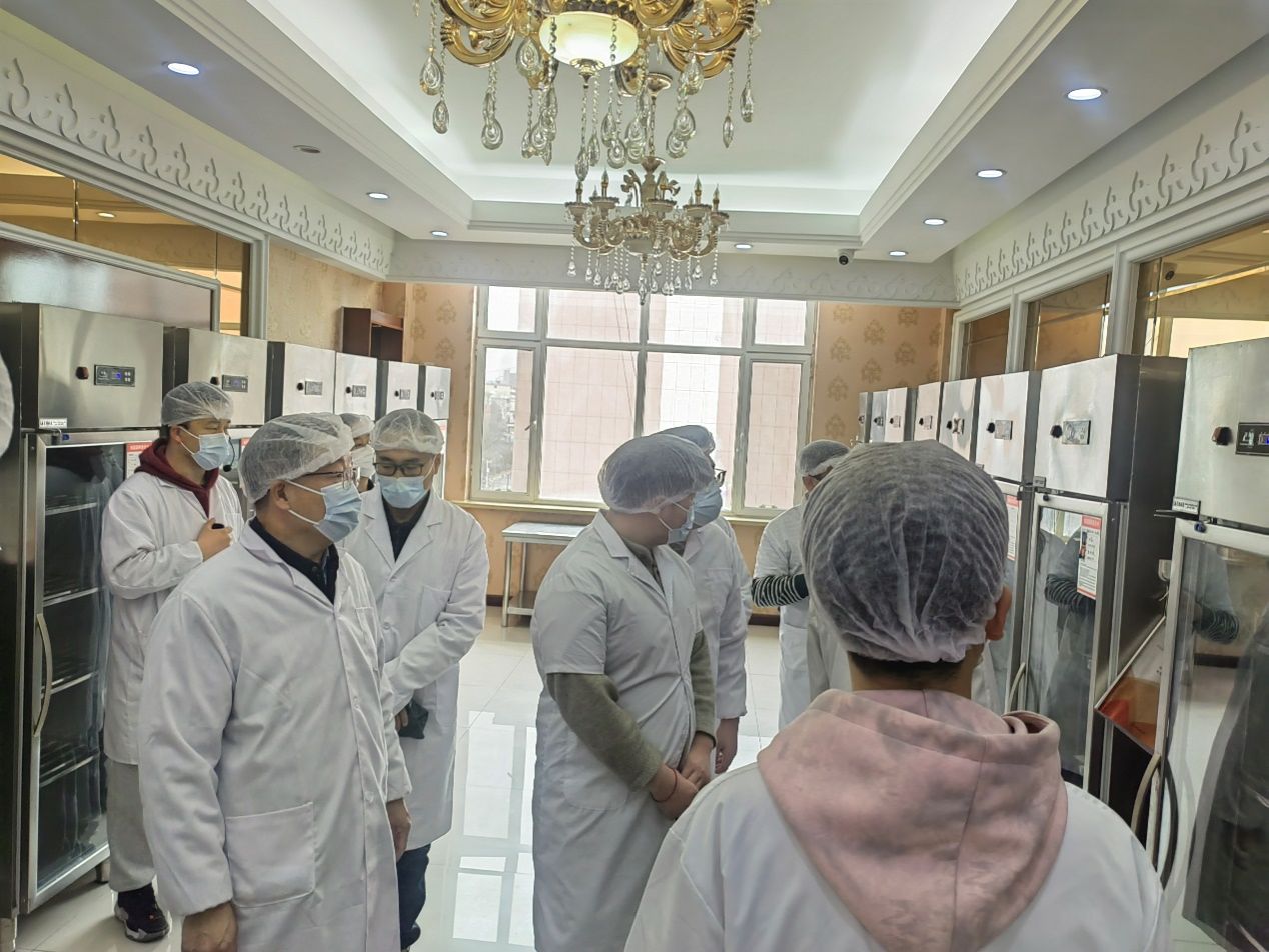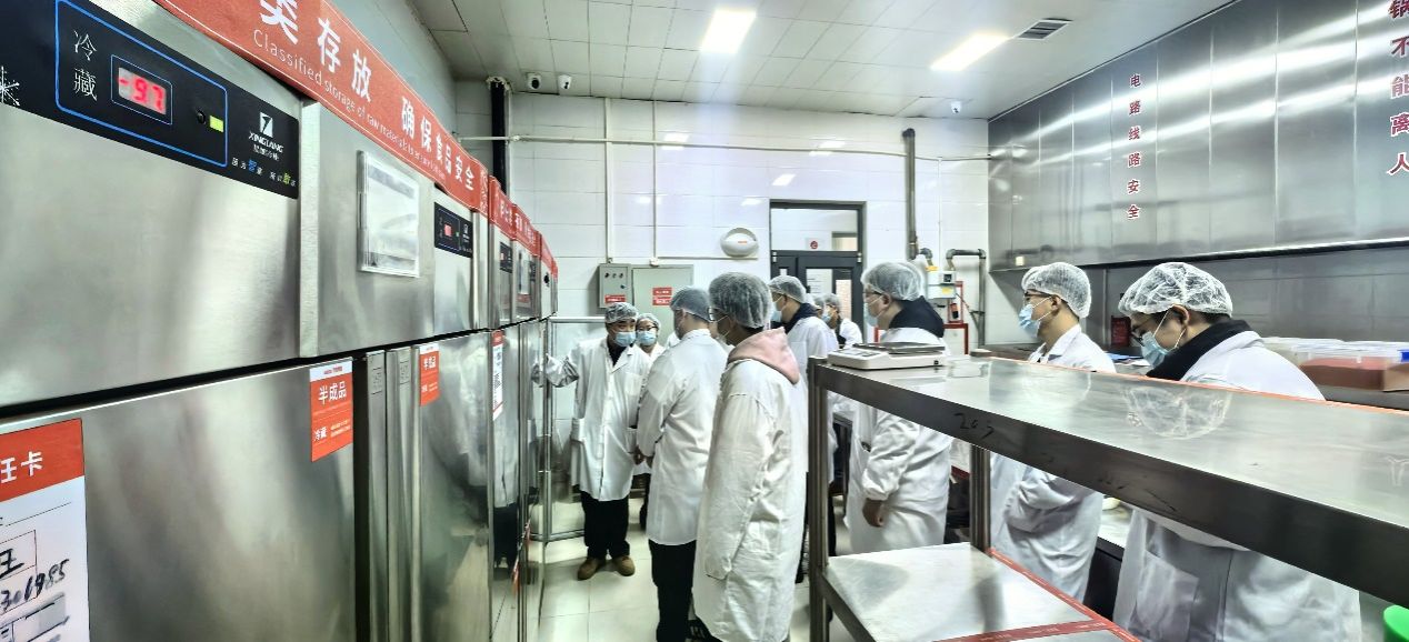 参会人员深入食堂一线,详细了解食堂运营模式、餐具洗消程序、原材料采购、留样管理、加工制作、供餐环节及“互联网+明厨亮灶”的情况。在食堂后厨详细查看了设备设施、食品保质期、卫生清洁、人员健康、场地消毒、制度建设、价格监管及水电气安全管理等情况。