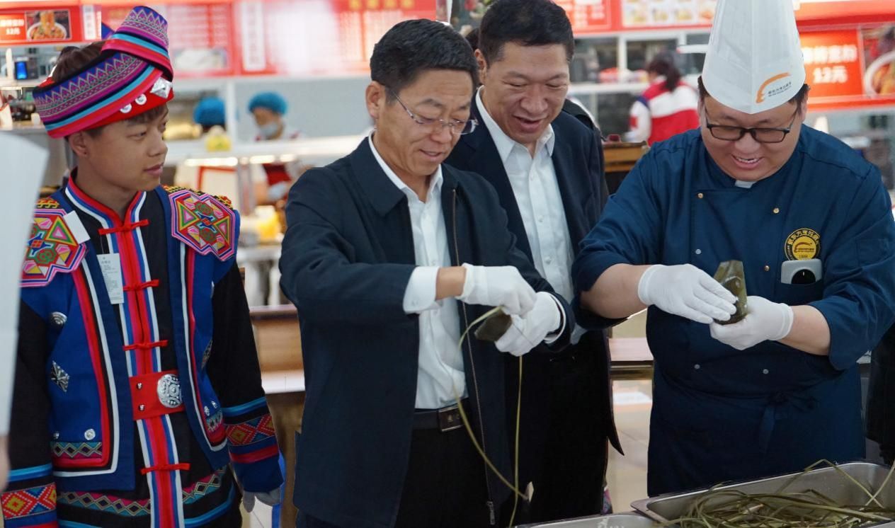 活动现场,非遗传承人、新东方烹饪集团高级主讲教师崔伟现场向师生传授制作技艺。崔伟从选料、浸米、煮叶、折粽叶、填糯米、放馅料、扎粽绳、煮粽子等方面讲授制作工序。校领导与汉族、蒙古族、锡伯族、瑶族、布依族等20个民族师生围在一起同包粽子,互帮互学,学习端午节文化,感受中华民族优秀传统文化的魅力,现场气氛温馨。