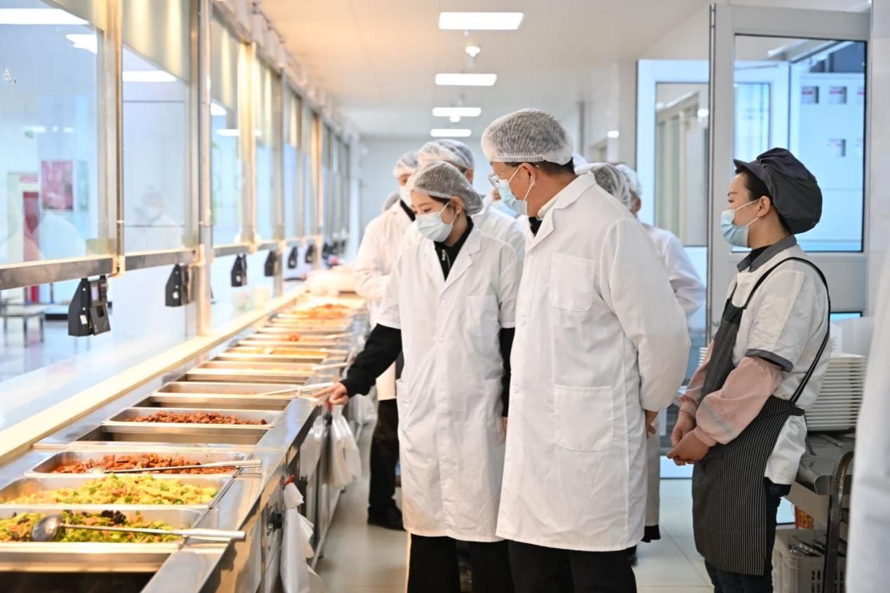 第一阶段,校领导带队分组现场检查,重点核查原材料采购验收、餐具清洗消毒、食品加工操作规范、从业人员管理、食品安全应急管理及智慧化监管等工作落实情况。