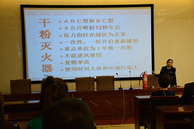 接着,汉文系根据学校综治委的相关工作部署,在学校保卫处的协助下邀请到内蒙古宜玖消防知识宣传有限公司乌兰教官作消防安全知识讲座。
