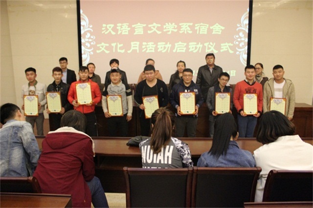 为深入开展宿舍文化月活动,汉语言文学系于2015年4月14日在学院图书馆一楼报告厅举办了汉文系宿舍文化月活动启动仪式。学生处副调研员张玉梅、系党总支书记赛音图、系主任崔凤珍、系副主任哈琴、各班主任及全体学生参加。会议由系团总支副书记张子涵主持。