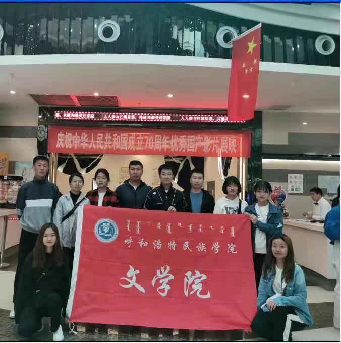 为庆祝中华人民共和国成立70周年,深入开展“不忘初心、牢记使命”主题教育,增强学生干部们的爱国意识和爱国情怀,10月12日下午文学院团总支张子涵老师、辅导员华国庆老师组织学生会成员观看电影《我的我的祖国》。