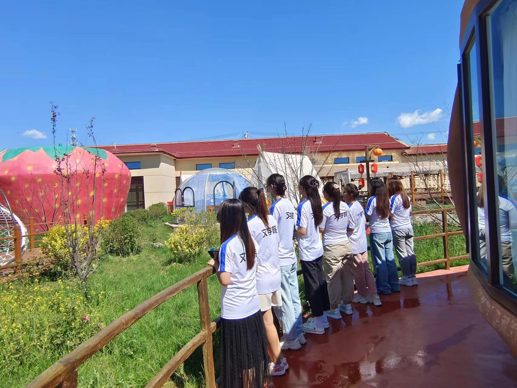 为深入学习贯彻党的二十大精神,了解新农村生活,感受乡村振兴步伐,8月5日至6日文学院团总支以“观察发展成就歌颂美丽乡村”为主题,由团总支负责人刘晓老师带队赴乌兰察布市察哈尔右翼前旗平地泉镇及其周边开展社会实践活动。参观团一行10人先后参观了农业产业数字中心、南村农业公园、民俗村、供销社等地,还参观了无土番茄培育基地和手工奶食品加工厂。