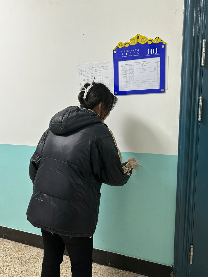 活动过程中,宝力尔老师组织学生进行了分组,各组学生在组长的带领下,分工合作完成各项任务,包括清理校园内的垃圾、清扫教室和公共场所等。