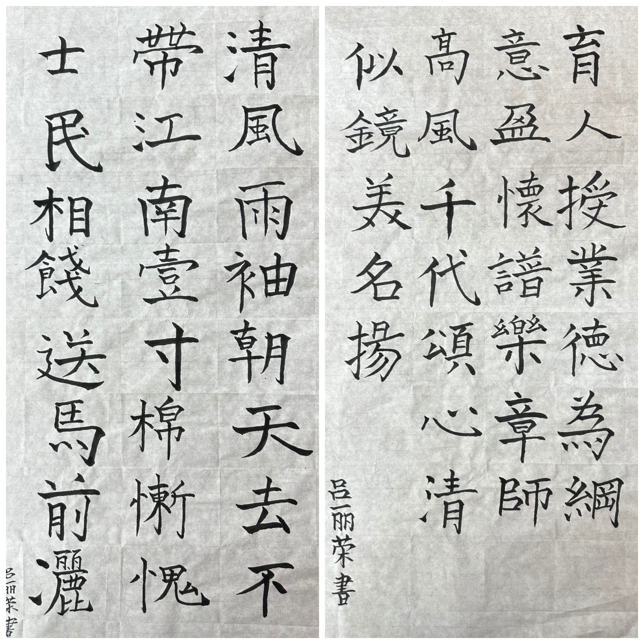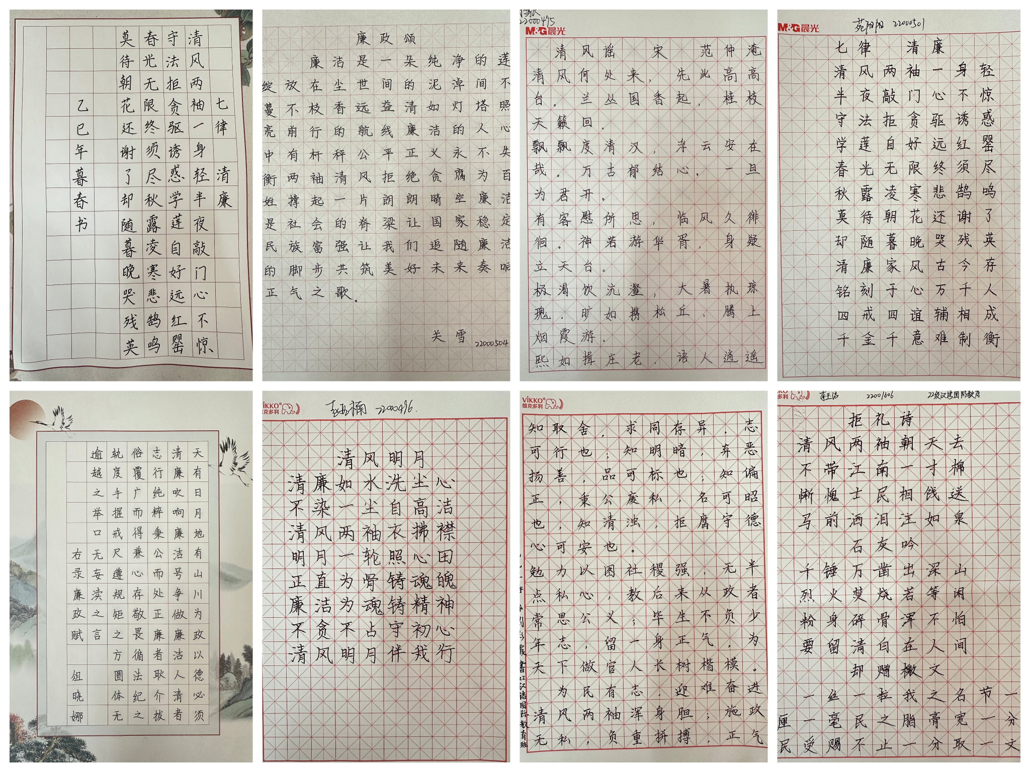 本次展览共收集了30 余幅学生创作的书法作品。展览现场,一幅幅笔力遒劲、风格各异的作品整齐陈列,作品内容涵盖廉洁典故、警句格言等,充分展现了学生对清正廉洁的理解与思考,以书法艺术形式传递廉洁理念,营造了浓厚的廉洁文化氛围。
