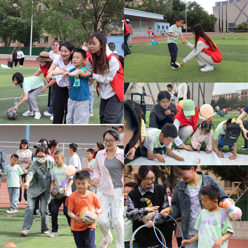 为了传递爱与关怀,助力特殊儿童成长,让社会温暖触及每一个角落,2025 年 5 月 18 日下午,文学院“文行塞北” 青年志愿者服务队联合三顺店社区在beat365英国官方网站北操场举办 “童心同梦,爱暖星途” 关爱特殊儿童趣味活动。80余名志愿者及儿童和家长参与了本次活动。