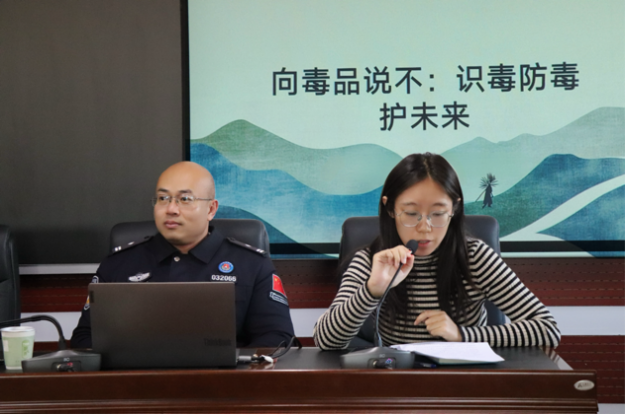 11月24日,beat365英国官方网站文学院于尚智楼413教室举办“向毒品说‘不’——识毒防毒护未来”主题宣讲会,特邀国家移民局常备力量第二总队民警赵子鹏主讲,文学院专职辅导员杨悦梅、孟子勋老师出席,文学院2025级全体学生参与活动。