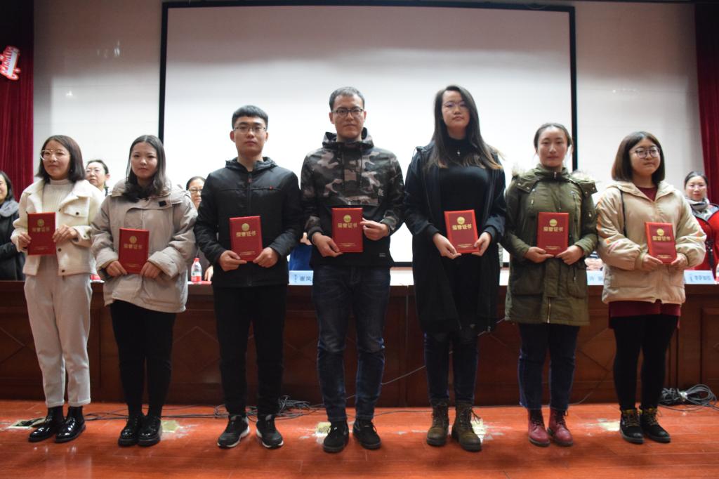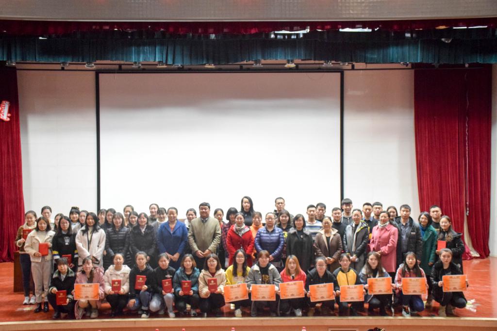 大会首先对4名教师技能大赛优秀指导老师、14名优秀带队老师、2017-2018年度获得自治区级“三好学生”的6名同学、14名优秀实习生、13名优秀见习生、12个优秀宿舍、45名通过英语四级考试学生及3名通过六级考试的学生,10名优秀读者学生进行表彰奖励。随后,汉语言文学系党总支书记赛音图、系主任崔凤珍教授分别做了重要讲话,希望受表彰的先进个人和先进集体要戒骄戒躁、再接再厉,以更高的标准严格要求自己,在学习和工作中切实发挥模范带头作用,在今后的学习和工作中取得更好的成绩。全系同学们要以先进个人、先进模范为榜样,努力学习、再创辉煌,为汉语言文学系的教育教学及各项工作再上新台阶,促进学校发展做出新的贡献。