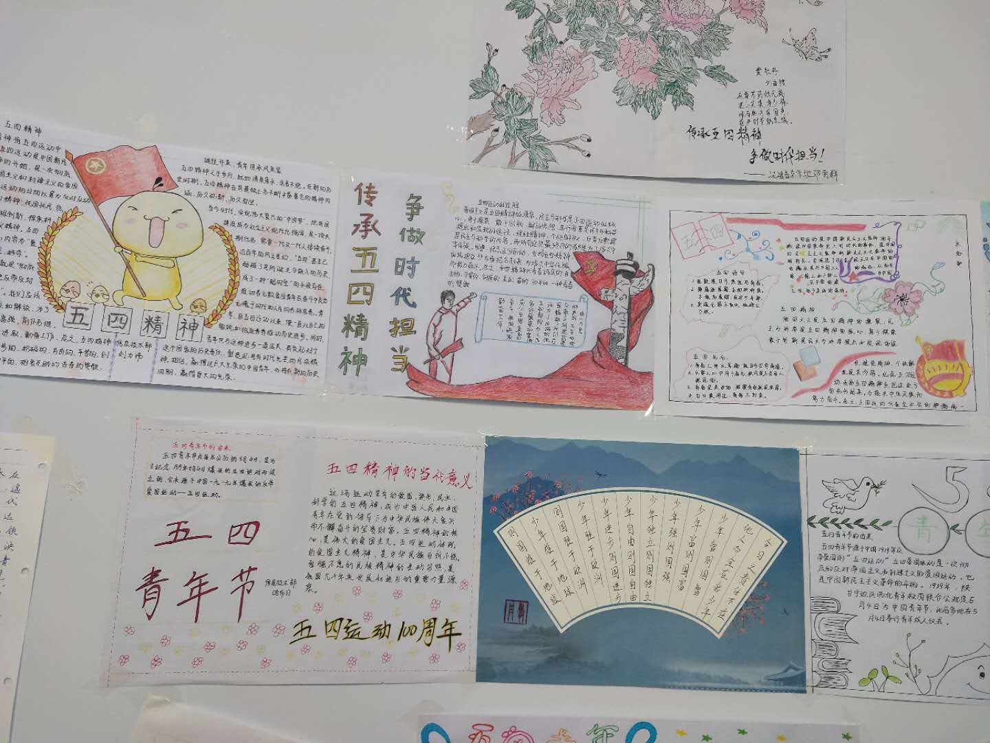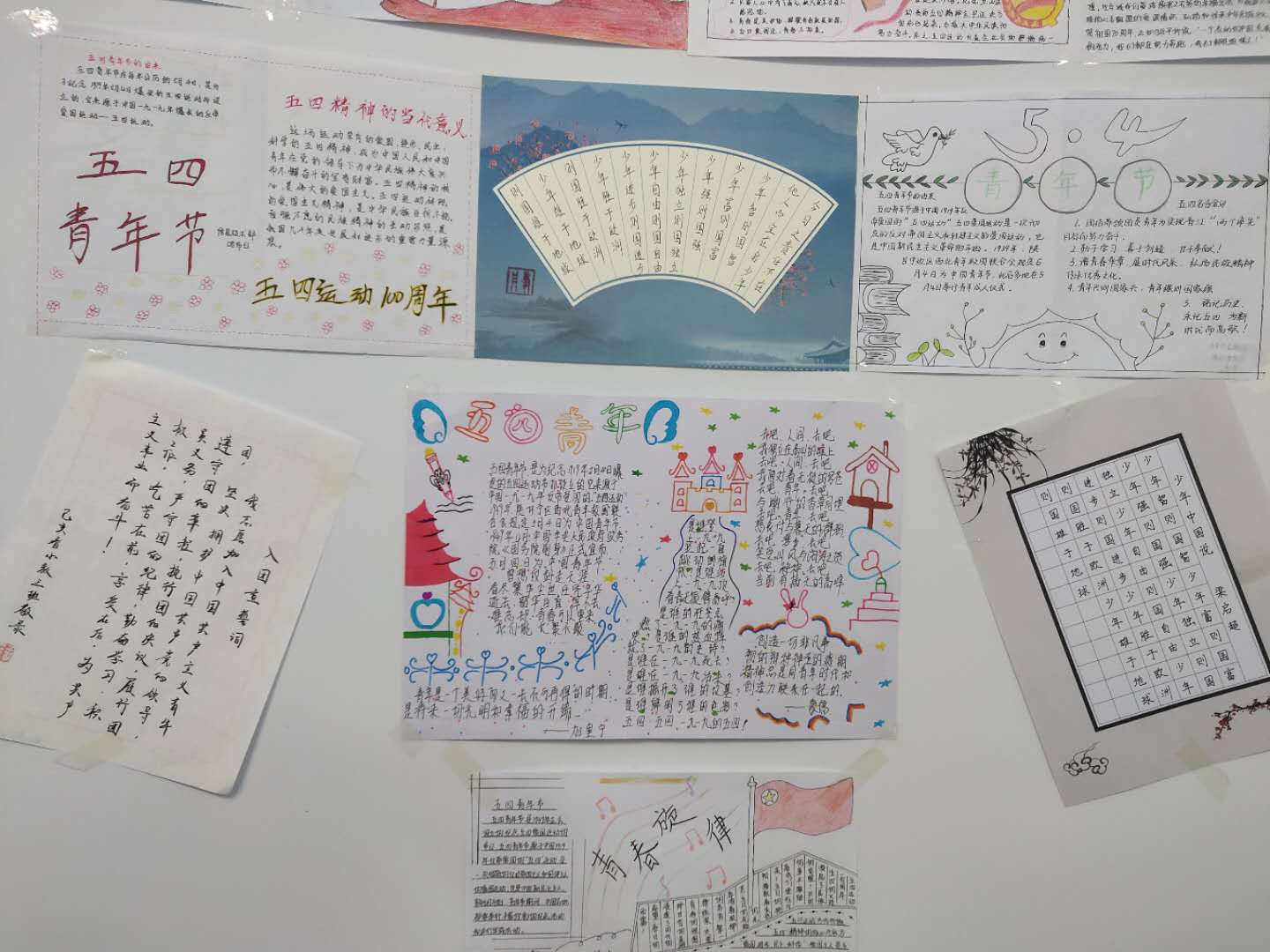 “五四”的历史卷轴通过一幅幅手抄报向我们徐徐展开,告诉我们只有不甘落后,奋起拼搏,才能振兴中华;只有用自已的双手奋斗,才能建设美好新生活!