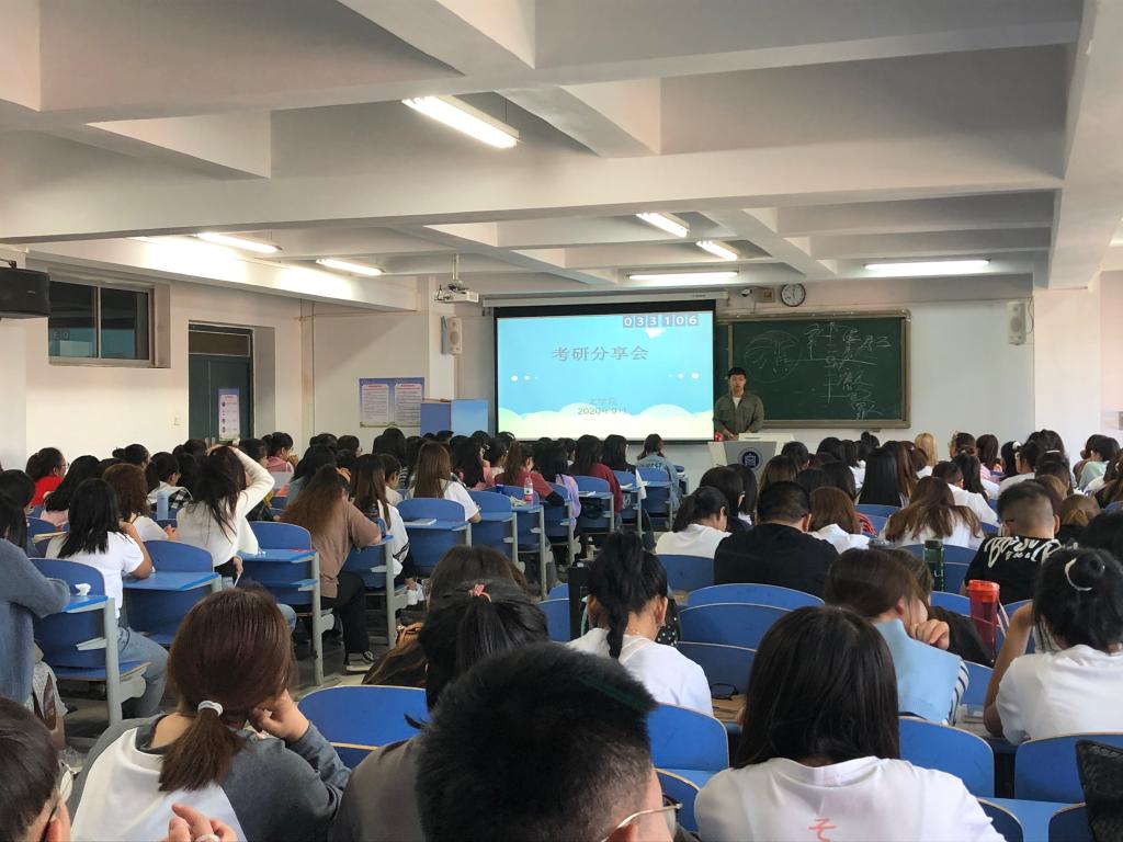 2020年9月,文学院在都林楼406教室举办考研分享会。邀请了我院2016级小学教育3班毕业生赵赫冉、田米雪为2018级小学教育专业的学生进行考研经验分享。