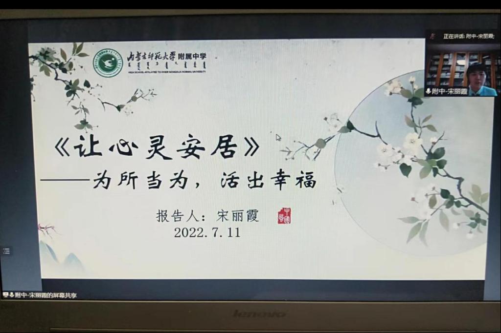 7月11日,文学院邀请内蒙古师范大学附属中学高级教师宋丽霞在线举办了题为《让心灵安居——为所当为,活出幸福》的名师讲座。讲座由文学院院长崔凤珍主持,党政办主任韩玉英和2019级小学教育、汉语国际教育专业200多名学生聆听了精彩讲座。