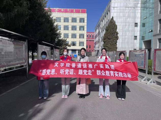 为将铸牢中华民族共同体意识内化于心,外化于行,勉励广大青少年坚定不移听党话、跟党走,4月12日上午文学院普通话推广实践团赴呼和浩特蒙古族学校开展“感党恩,听党话,跟党走”主题宣讲活动。