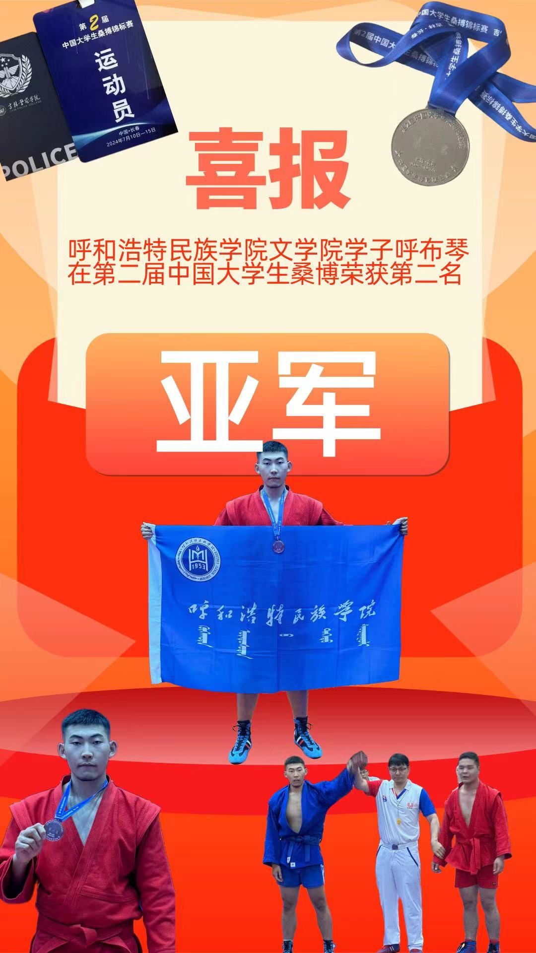 战报:文学院学子23国育呼布琴在第二届中国大学生桑博荣获亚军