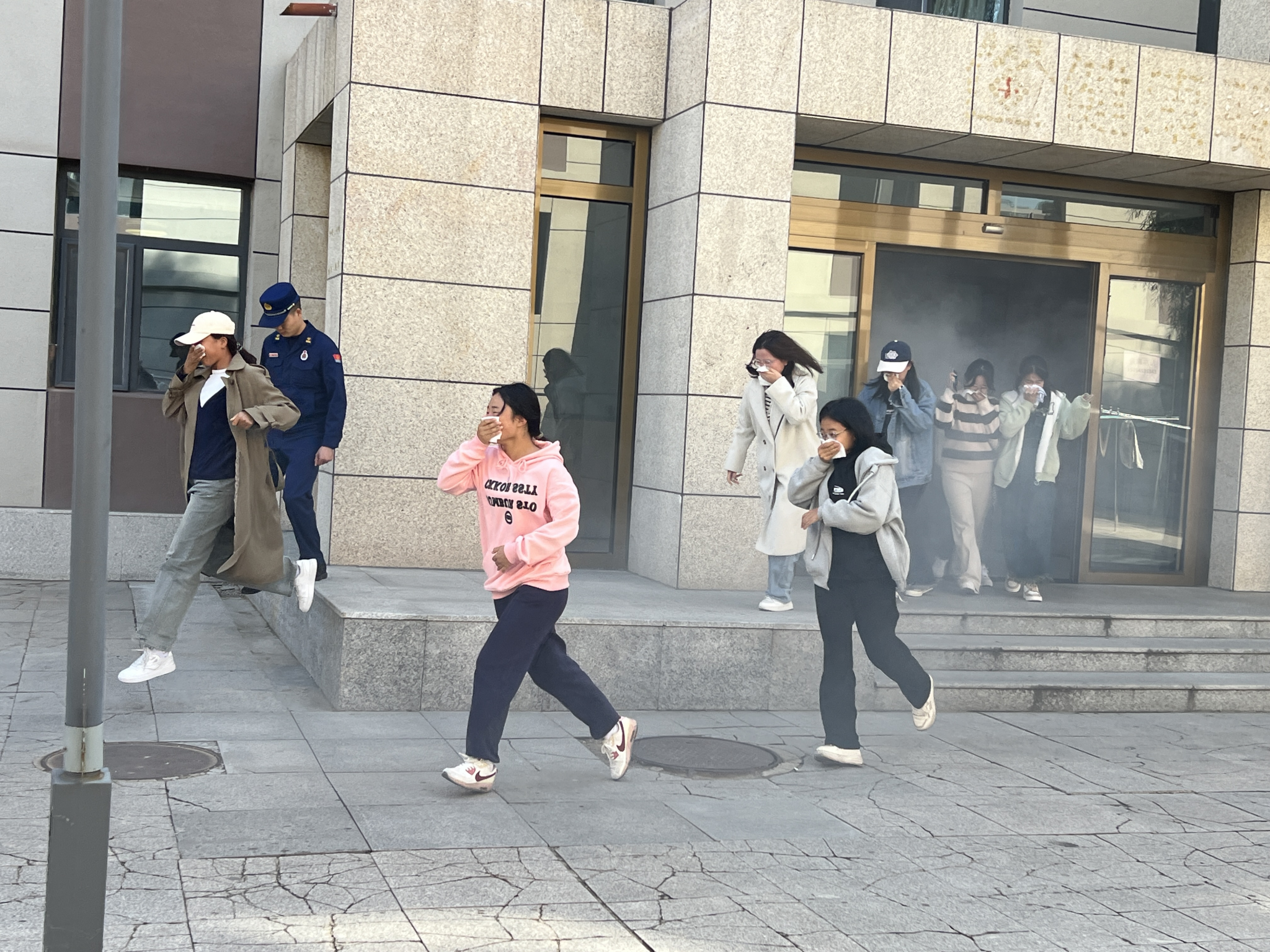 演练开始,随着消防警铃响起,文学院师生迅速进入紧急状态,按照预定的疏散路线,用湿毛巾捂住口鼻,低姿弯腰有序地从宿舍快速撤离至尚智楼门前集合。随后,南丁、李黄超对逃生情况进行评价并介绍了怎样防火、灭火,如何扑救初起火灾及逃生自救技巧等,并为师生们指导消防器材的使用方法。学生亲自上手操作,切实掌握了消防器材的正确使用方法。实操后,李黄超为我院师生开展了消防培训讲座,就引起火灾的诸多原因、火灾的种类、并列举多个火灾死伤实际案例加深同学们的理解。