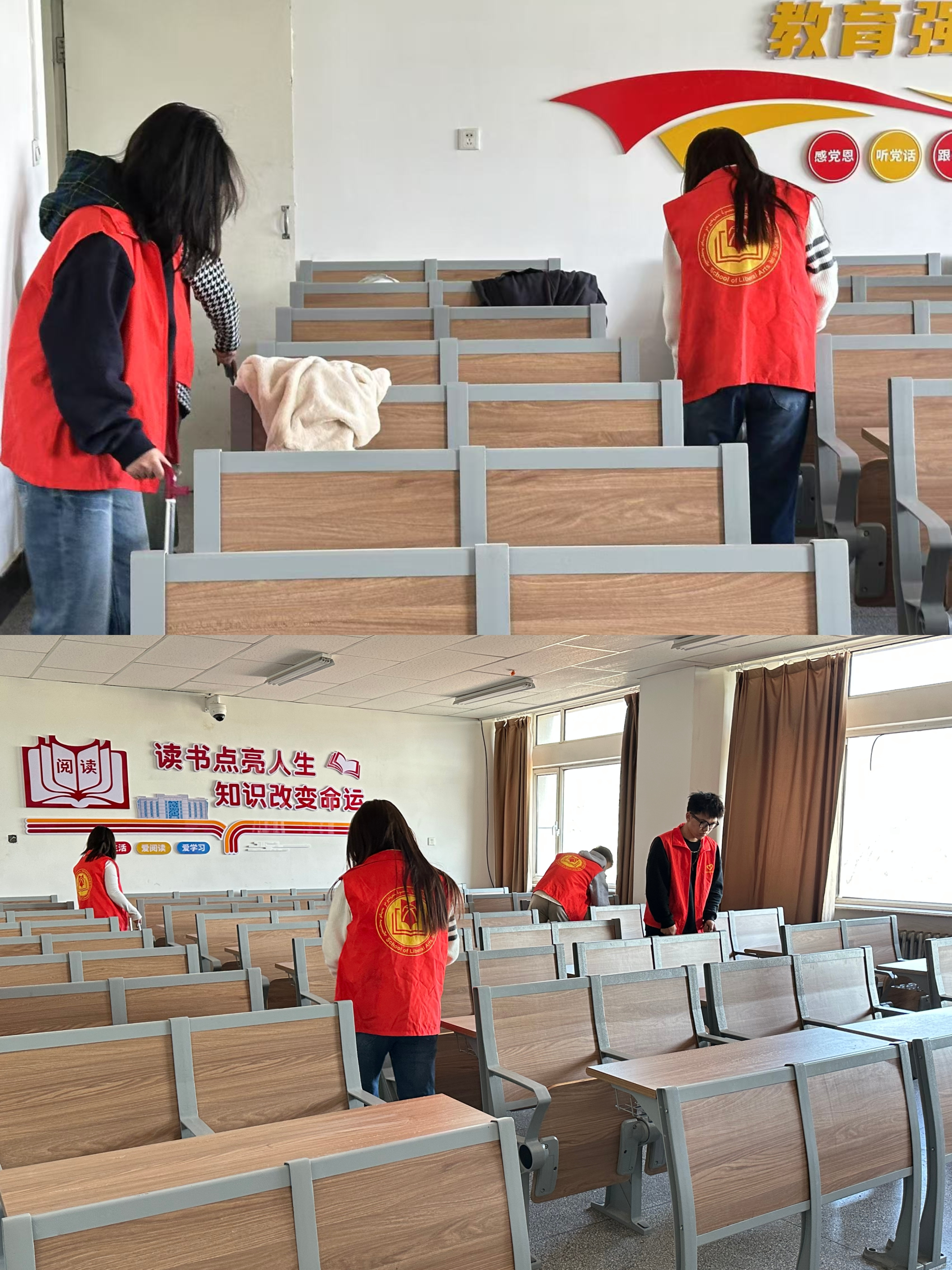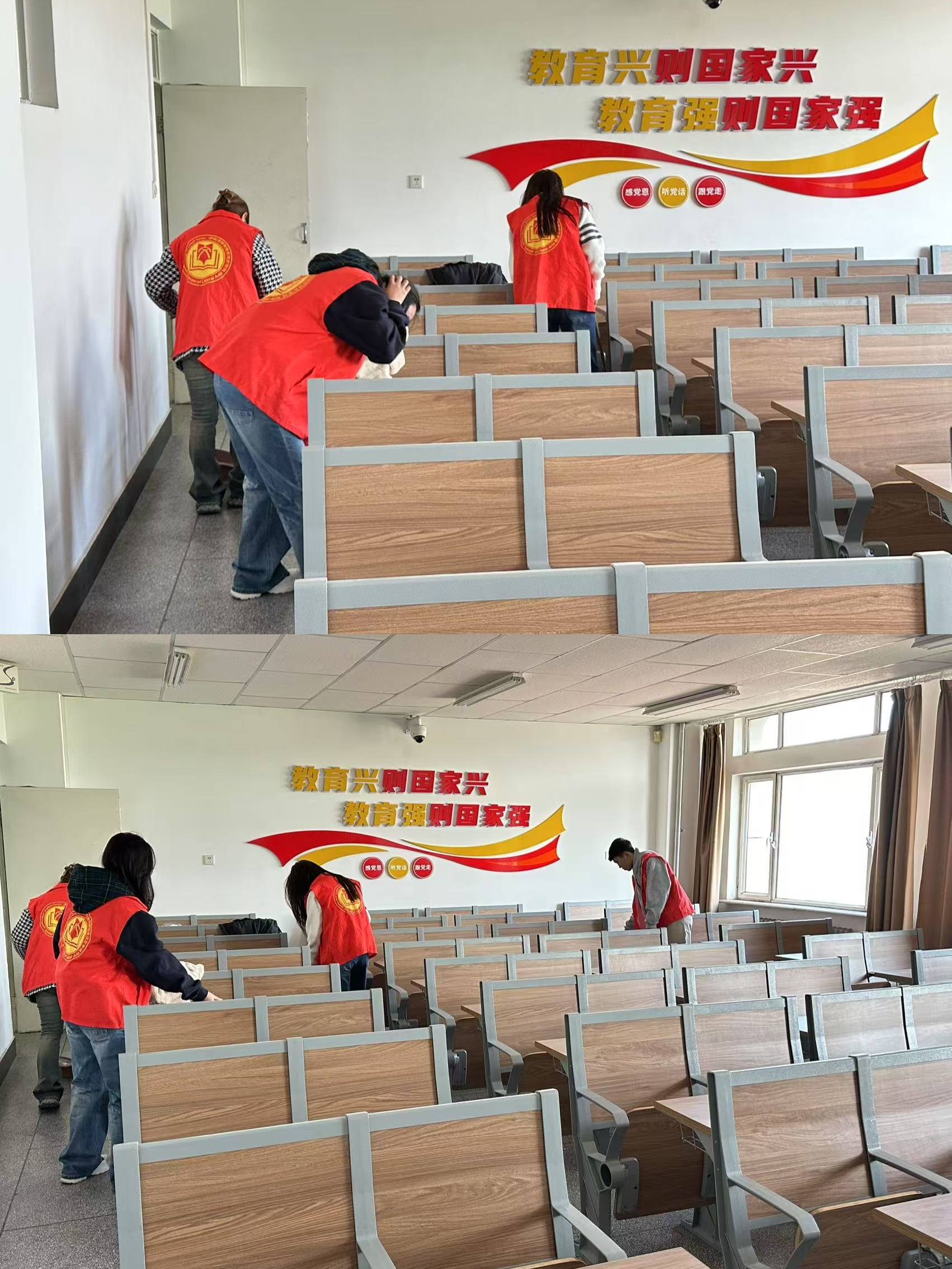 活动期间,志愿者们分工协作,迅速清理教室卫生,确保环境整洁有序。经过大家的共同努力,教室焕然一新,为同学们创造了良好的学习条件。
