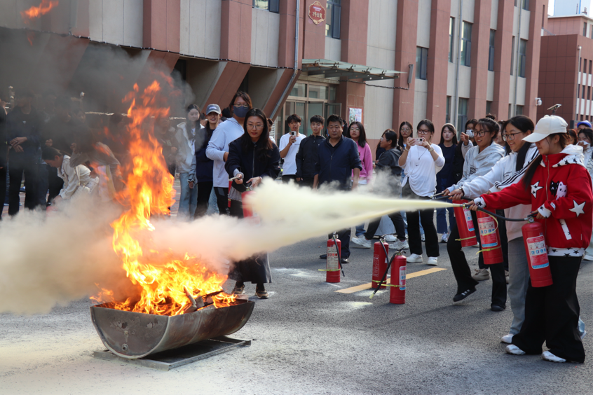 随后,保卫处工作人员现场演示了灭火器等消防器材的正确使用方法,并指导同学们进行实际操作。大家积极动手体验,在实践中掌握了基本的消防技能。