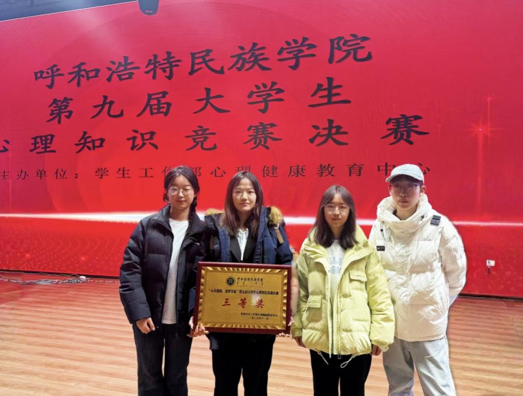 2025年11月20日,文学院学子陈若彬、梅歆苑、韩佳珉在beat365英国官方网站第九届心理知识竞赛决赛中,凭借扎实的知识储备、默契的团队协作,以及沉稳的临场发挥,最终荣获三等奖。充分展现了文学院良好的学习积累与协作风貌。