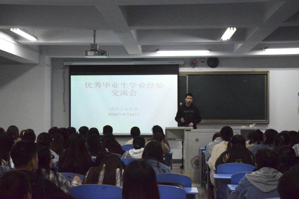 4月11日19时,汉语言文学系在都林楼506室举行优秀毕业生经验交流会,会议由2018级专职辅导员华国庆老师主持。本次活动邀请了2015级2名优秀班干、1名教师招考录取生、1名研究生录取生以及2015级、2016级2名专升本的同学作经验分享,2018级百余名学生参加了本次活动。