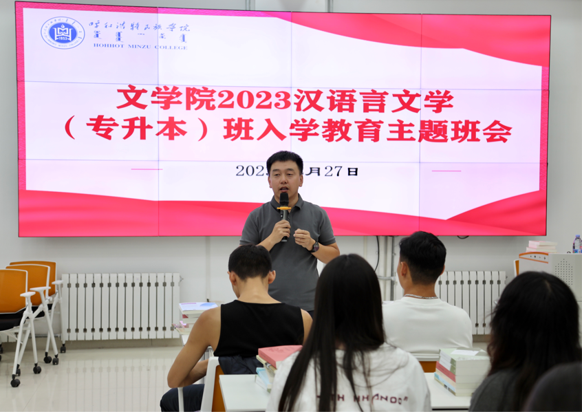 为进一步做好新生入学教育工作,引导2023级专升本新生认清身份角色、做好学业规划、适应新的大学生活,8月27日晚19:00时,文学院2023汉语言文学(专升本)班在创业楼一楼会议室召开“开学第一课”入学教育主题班会。班会由班主任韩争运主持,班级全体成员共43人参加。