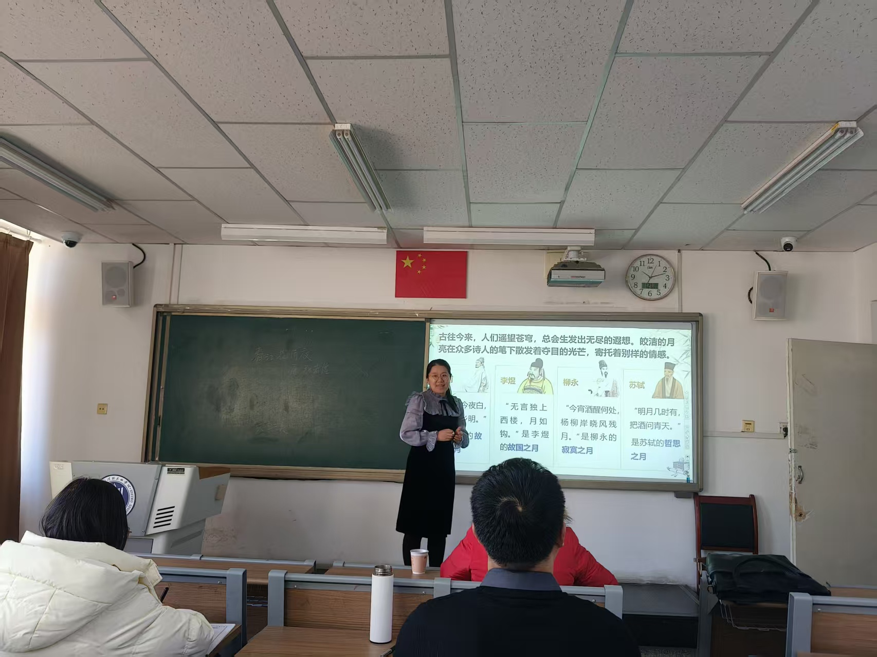 初赛中,王佳、闫博、孟子勋、张暘、李雪凝五位教师依次登台,分别就《春江花月夜》《文学的性质》《葛生》《郑伯克段于鄢》及《创意写作与民间文学》等专题进行了精彩的教学展示。经评议,王佳、闫博两位老师凭借扎实的学识、清晰的讲授和良好的风范脱颖而出,将代表文学院参加学校决赛。
