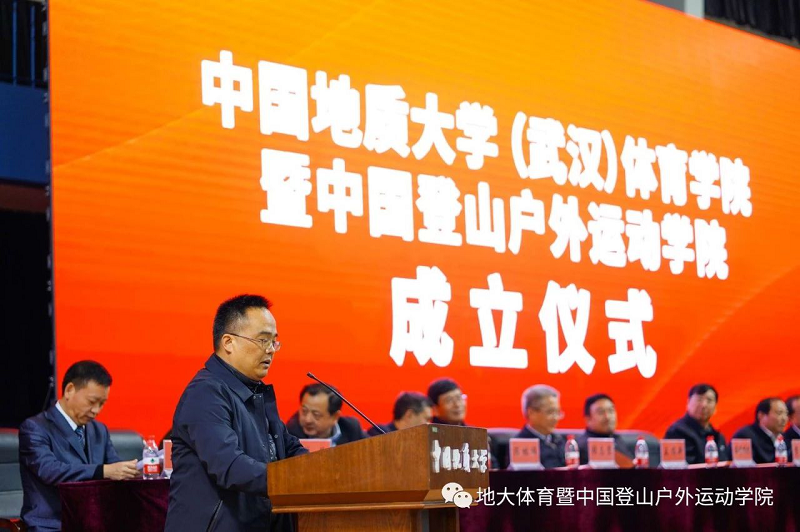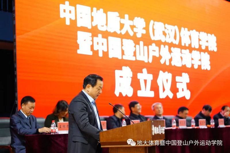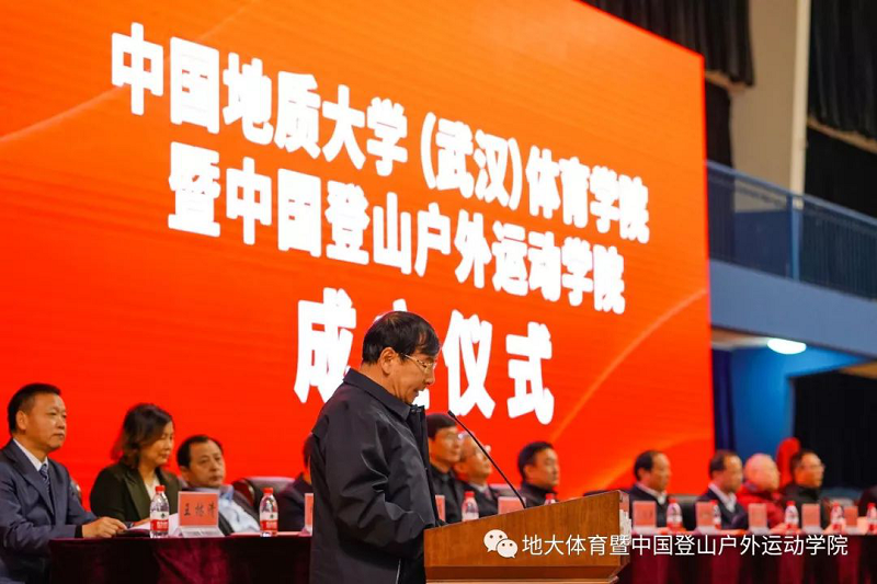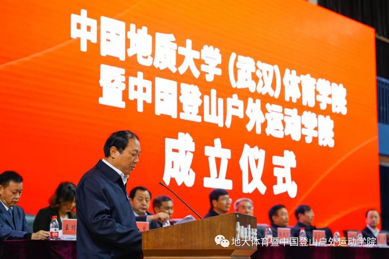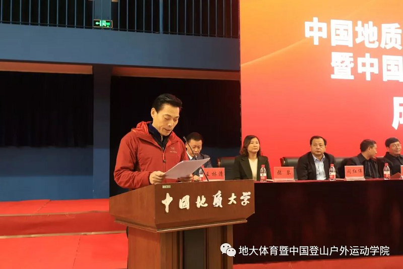 国家体育总局登山运动管理中心主任、中国登山协会主席李致新同志在致辞中赞扬了地大师生“不畏艰险、顽强拼搏、团结协作、勇攀高峰”的中国登山精神,表达了对共建中国登山户外运动学院的充分肯定和大力支持,使之成为国内一流、国际具有一定影响力的中国特色的综合性应用型专门运动学院。祝愿中国登山户外运动学院茁壮成长!