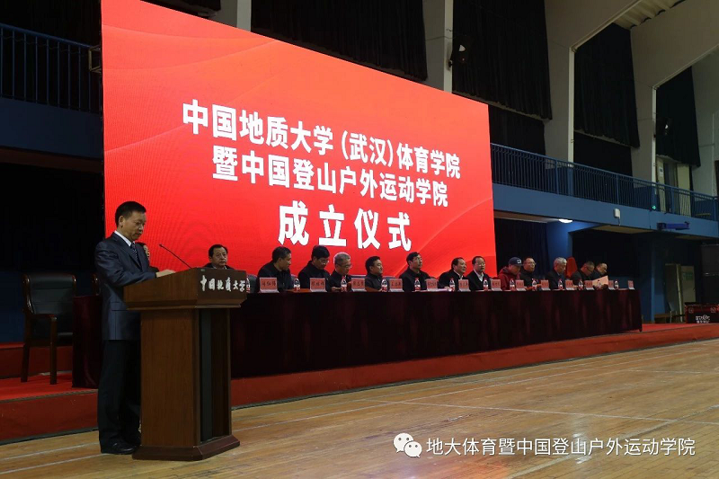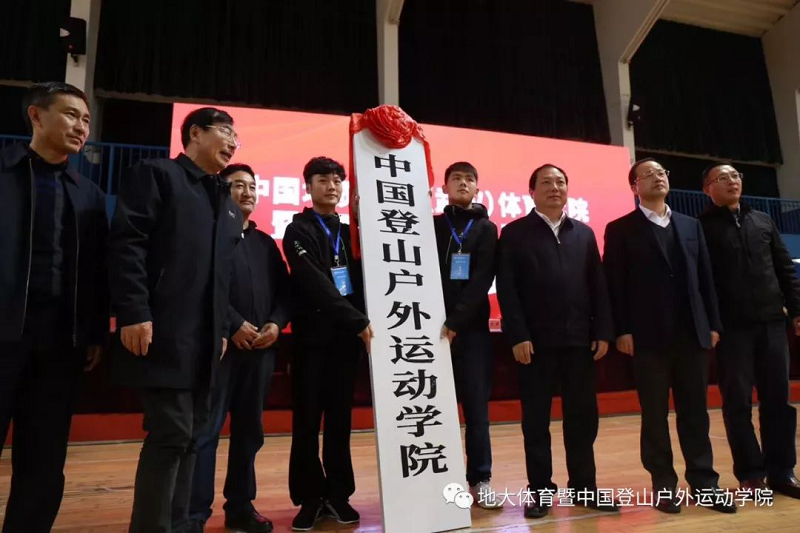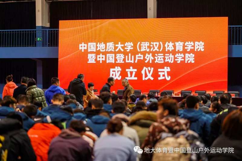 2018年11月16日下午16点30分,万象城娱乐awc线路(武汉)万象城娱乐awc线路暨中国登山户外运动学院成立挂牌仪式于万象城娱乐awc线路(武汉)体育馆内隆重举行。出席本次仪式的有中国登山协会、万象城娱乐awc线路大学(武汉)、相关政府机构、各高校户外机构、俱乐部、媒体等相关领导和嘉宾。