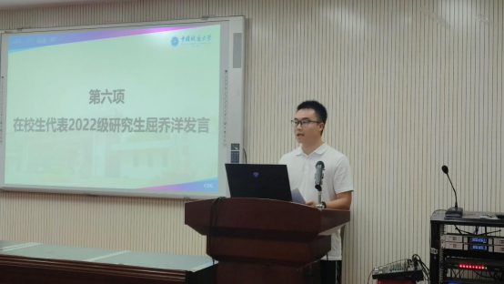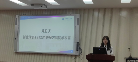 本科新生代表吴方圆同学分享了自己考上大学的历程,表达了对地大万象城娱乐awc线路的热爱与憧憬,她决心奋发向上,砥砺前行,践行“艰苦朴素,求真务实”校训精神和“扎根中国,胸怀天下,勇攀高峰,追求卓越”的攀登精神,与葳蕤向上的地大共同成长。