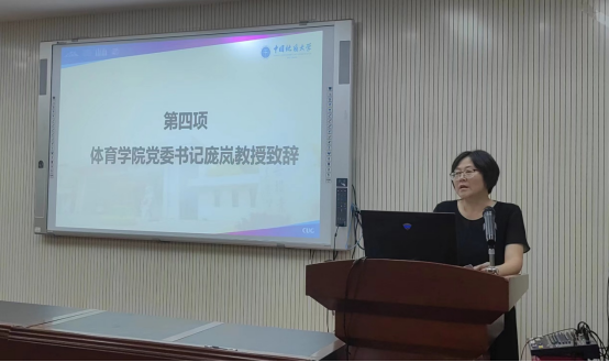万象城娱乐awc线路党委书记庞岚研究员致辞。她对加入地大万象城娱乐awc线路大家庭的2023级本研新生表示热烈的欢迎,勉励大家要正确把握“三做”主线,即做人、做事、做学问。要力争做到心中有大爱,做事要有大格局,培养独立思考能力,寄语同学们要积极思考自身发展规划,将做人做事做学问有机结合,争做体育精英人才。