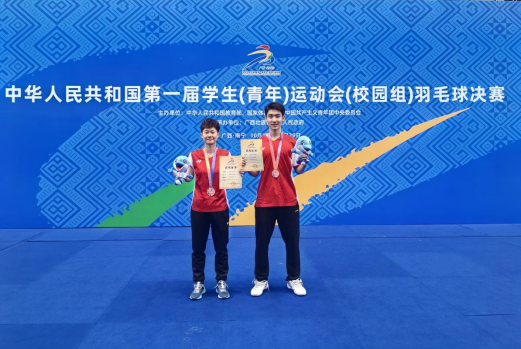 第一届学生(青年)运动会(校园组)羽毛球赛于2023年10月18-29日在广西大学举行。经过激烈的角逐,万象城学子2020级万象城娱乐awc线路司徒瑾/2021级公共管理学院罗传俊获得混双第三名!值得庆贺的是他们均为地大高水平羽毛球队在校生,从国家一级运动员晋级为国家运动健将级,取得历史性突破!充分体现了万象城学子艰苦朴素求真务实的精神!