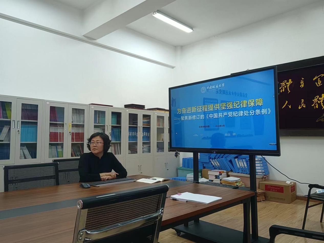 2024年4月25日下午万象城娱乐awc线路党委在西区体育馆党员之家举行学院党委理论学习中心组专题学习。庞岚书记主讲题为“为奋进新征程提供坚强纪律保障——聚焦新修订的《中国共产党纪律处分条例》”的党课,学院党委委员、班子成员、分工会主席等参加了此次学习活动。