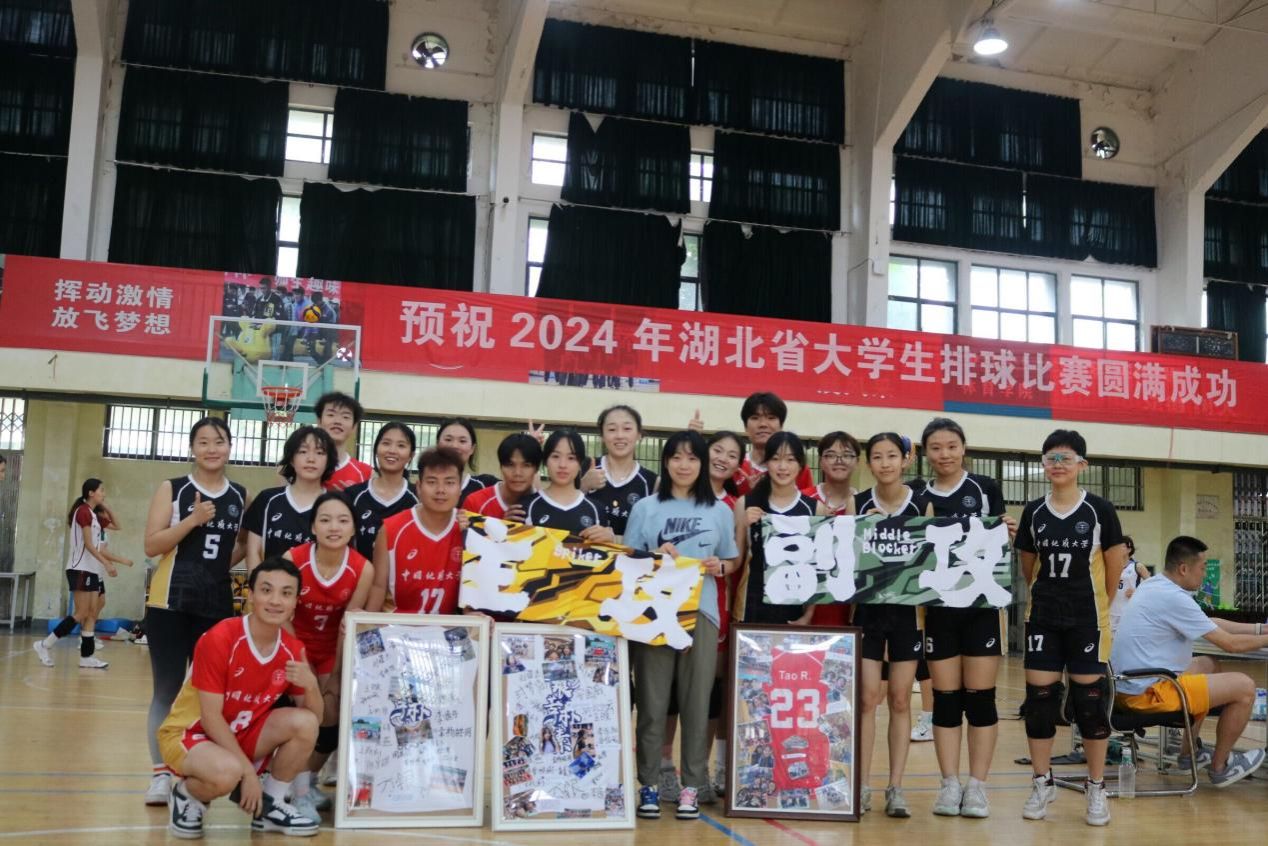 作为蝉联湖北省大学生排球比赛前八强的种子队伍,校女子排球队从6月11日开始小组赛,先后战胜了湖北中医药大学、武汉学院、湖北经济学院、湖北医药学院,小组赛以1:2比分惜败中南财经大学,小组第二出线。在八进四半决赛中不敌老牌强队武汉大学,未能成功晋级四强。校女子排球队在淘汰赛阶段虽有多位主力因故不能到场,但也顽强拼搏,彰显地大竞技精神,最终排位赛以2:0胜武汉工程大学拿下第七名的成绩。她们在赛场上奋不断突破自我,用实际行动诠释了女排精神,为学校的荣誉而战。