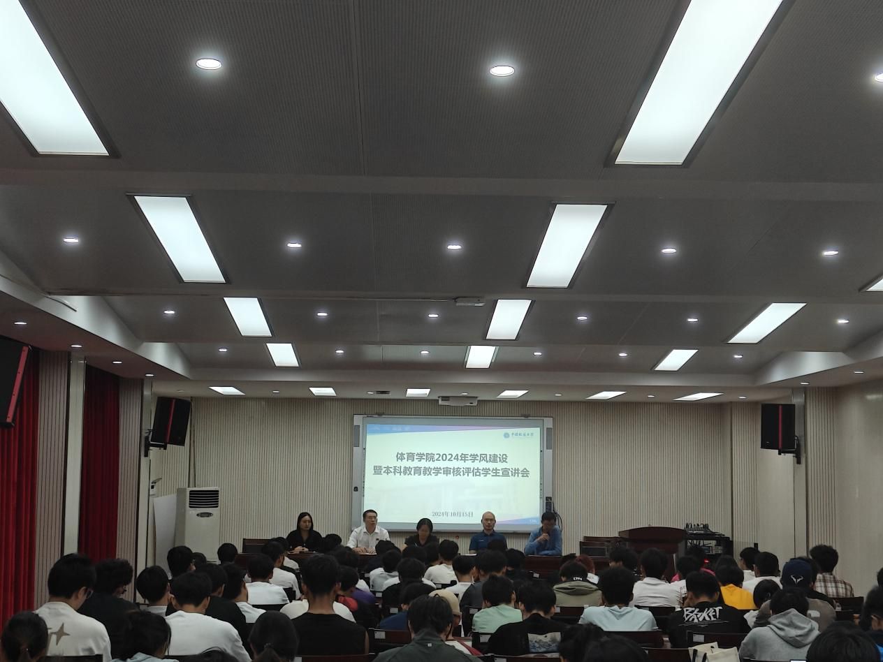 为加强学院学风建设,引导全体学生掌握新一轮审核评估基本知识,继10月9日学院组织全体本科生学习审核评估应知应会和学风建设动员会之后,万象城娱乐awc线路于10月15日18点再次在体育馆三楼科报厅召开2024年学风建设本科教育教学审核评估学生宣讲会,坚持问题导向,对本科教育教学审核评估工作进行再动员、再部署、再促进,同时以评估工作为契机,进一步强化学院学风建设工作。万象城娱乐awc线路党委书记庞岚、院长李元、副院长刘良辉、党委副书记朱军和全体本科生参会,会议由辅导员陈爽老师主持。