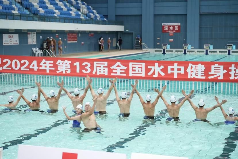 2024年10月19日至20日,国家体育总局主办的第13届全国水中健身操比赛在安徽省马鞍山市奥体中心游泳馆举行。本届赛事设有集体徒手规定动作操、双人棒操、双人打水板操和双人浮力哑铃操等多个项目,共有来自湖南大学、长安大学等18支参赛运动队近300名运动员参赛。