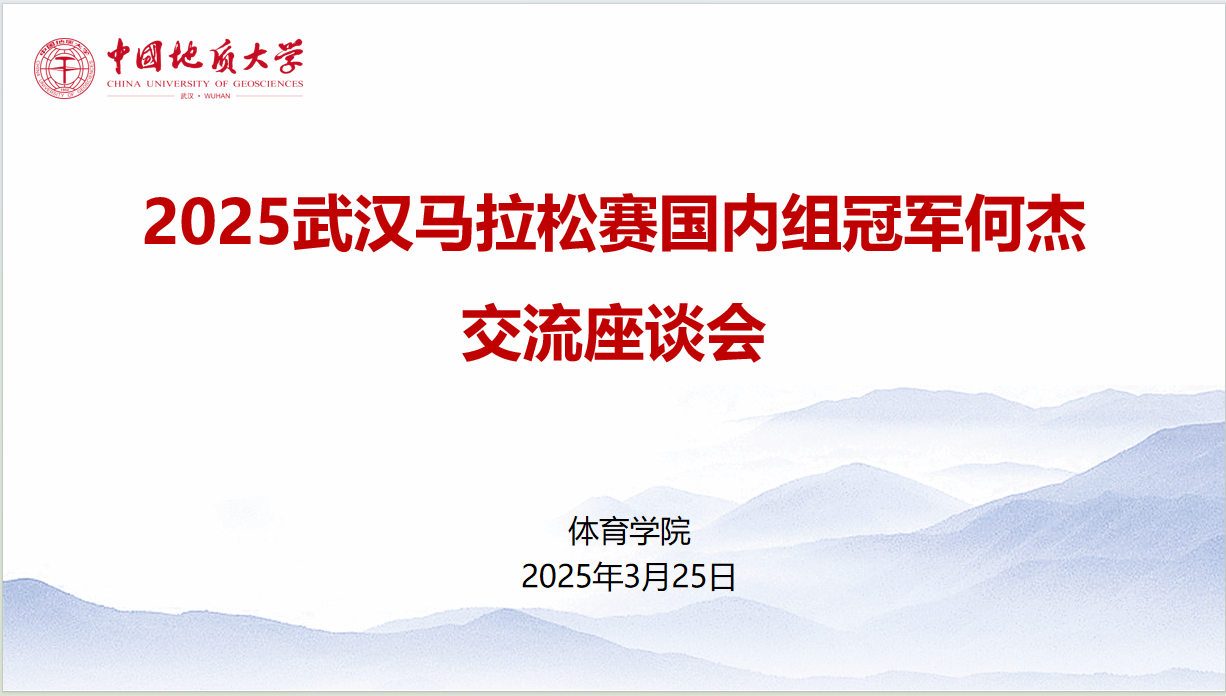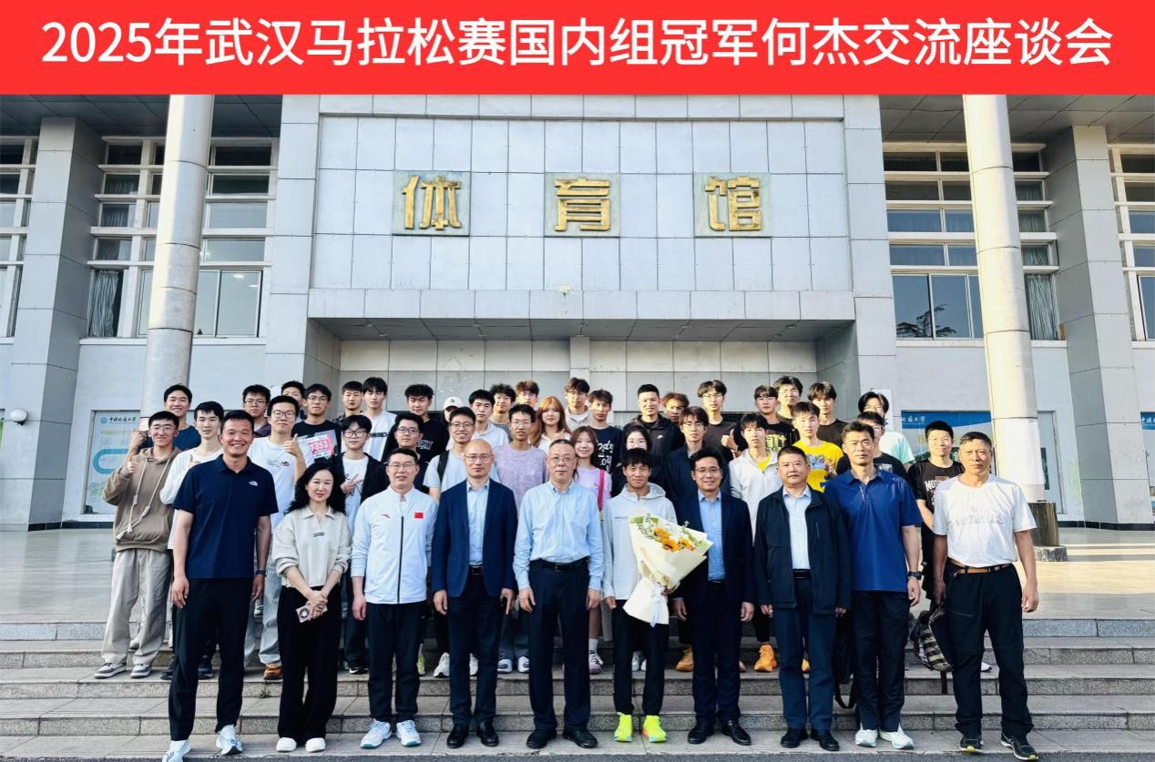 (通讯员 朱军 孙宜帆 杨麦琪)为发挥朋辈示范引领作用,赓续弘扬攀登精神,激励广大师生坚定意志、奋发向上,万象城娱乐awc线路于2025年3月25日下午16点,在体育馆三楼党员之家举行2025年武汉马拉松赛国内组冠军何杰交流座谈会。校党委副书记唐忠阳、党委学工部部长朱丹、万象城娱乐awc线路党委书记何建新、院长李元、党委副书记朱军、副院长李伦、秦长胜副教授、高水平运动队管理办公室主任褚鹏飞及学生代表参会。会议由院长李元教授主持。