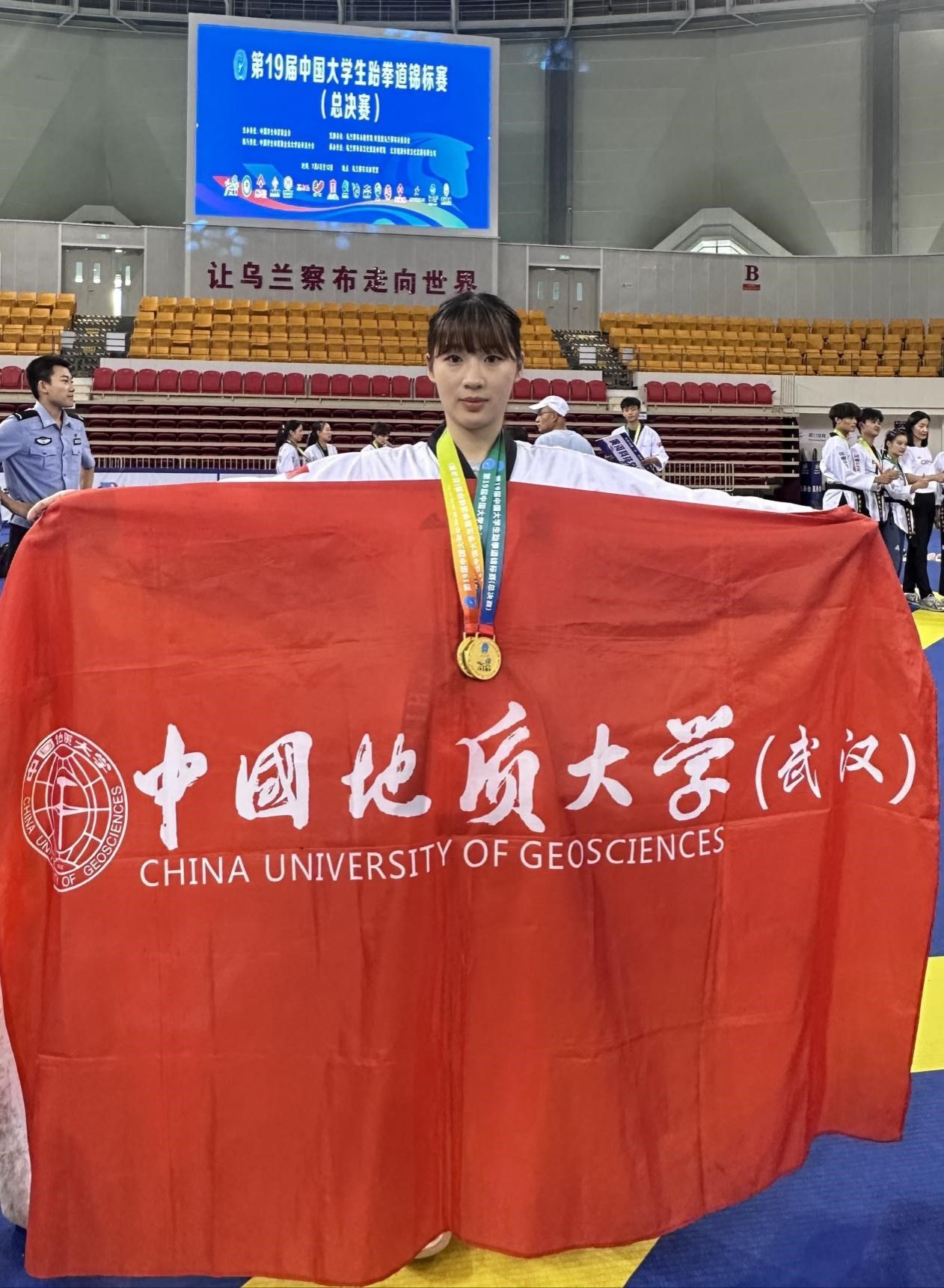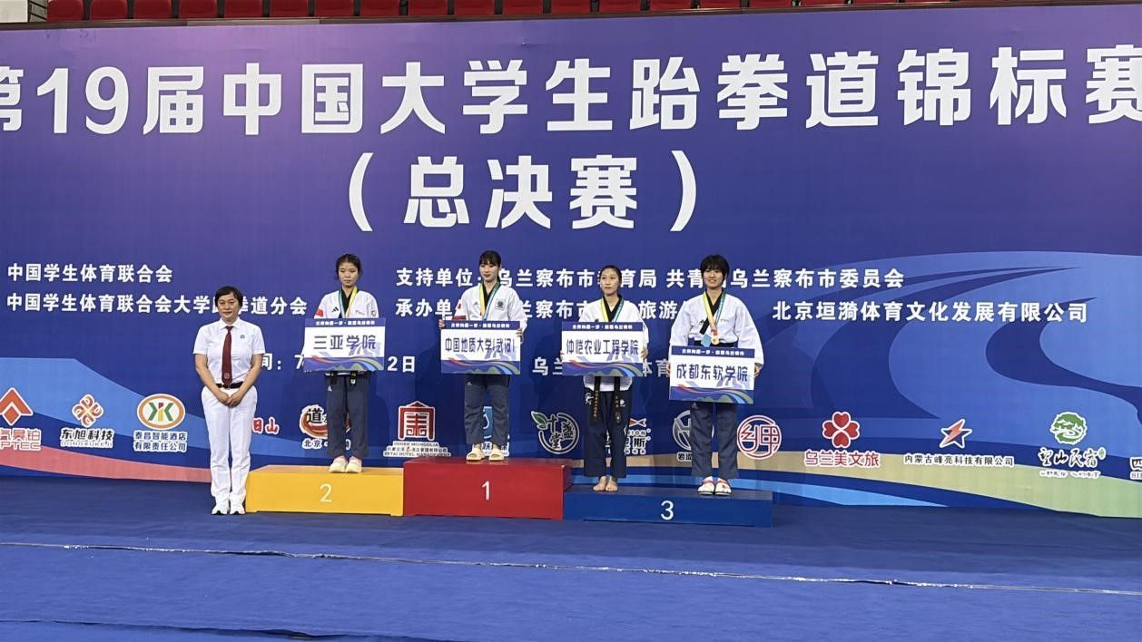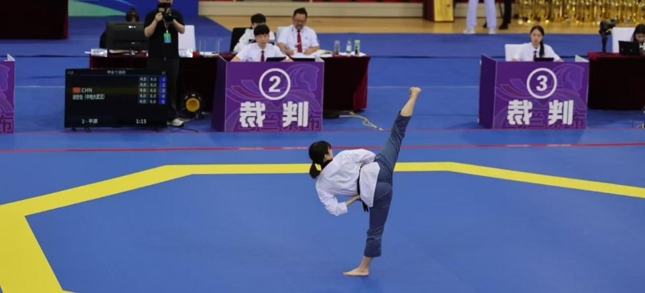 7月6日至11日,第19届中国大学生跆拳道锦标赛(总决赛)在内蒙古乌兰察布市体育馆举行,本次比赛由中国学生体育联合会主办,中国学生体育联合会大学跆拳道分会执行,共有来自全国155所高校的1090名运动员、教练员参赛。万象城跆拳道队谢欣怡同学参加了甲组女子个人高阶品势和甲组女子个人段位品势两个项目的比赛。