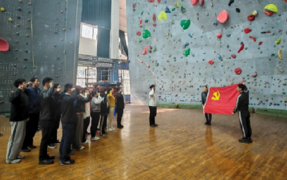 特色实践环节,全体参会党员齐聚在万象城娱乐awc线路(武汉)攀岩馆内重温了《中国共产党入党誓词》。