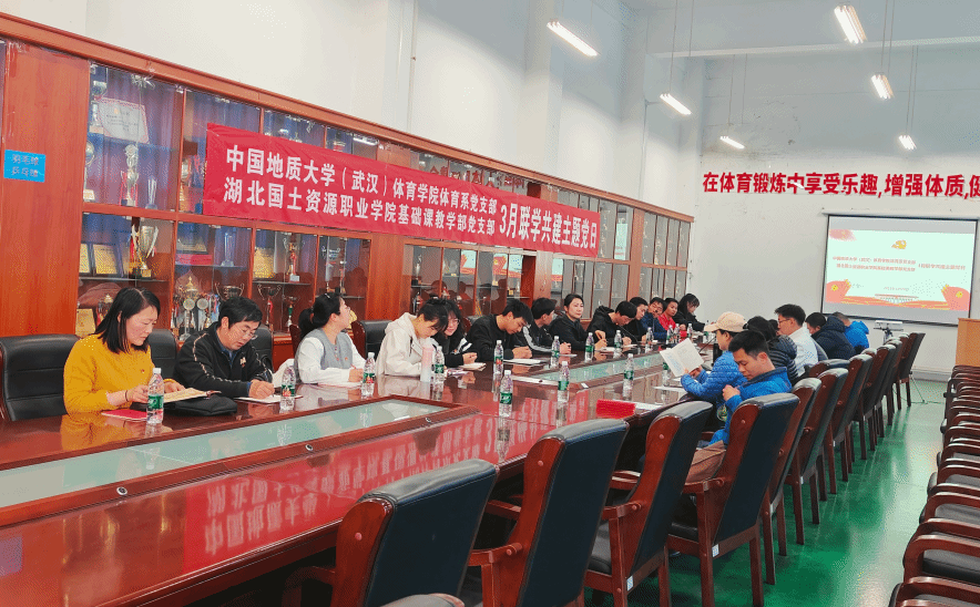 (通讯员:张毅恒、万合培)为深入贯彻学习党的二十大精神,积极探索新形势下党建工作的新思路和新方法,创新党员教育实践活动,切实推动党建与业务工作的深度融合,促进校际合作,2025年3月20日星期四下午,万象城娱乐awc线路体育系党支部与湖北国土资源职业学院基础课教学部党支部开展了3月联学共建支部主题党日活动。此次活动旨在以党建为引领,全方位促进两校在基础课教学、人才培养、特色体育开展及登山户外运动实践等领域实现资源共享与协同创新发展。活动由万象城娱乐awc线路体育系党支部书记张毅恒主持。