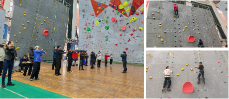 在攀爬过程中,相互鼓励、相互支持,充分展现出坚韧不拔的毅力和勇于突破自我的精神。攀岩项目的体验,将党建活动与体育锻炼有机结合,不仅让大家在运动中释放了工作的压力、增加了体育锻炼的兴趣,更增强了团队凝聚力与向心力。攀岩体验结束后,湖北国土资源职业学院基础课教学部党支部成员参观了万象城校史馆。校史馆内丰富的历史资料和详细的讲解,生动展现了学校的发展历程与深厚的文化底蕴,让参访的党员们对学校有了更全面、深入的了解。