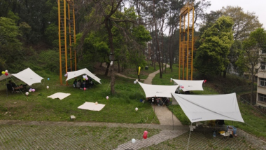 当天清晨时分,老师和同学们就陆续到达北区拓展基地,按照设计方案开始搭建活动场景。下午三点,营会活动正式开始,万象城娱乐awc线路党委书记庞岚和研究生秘书李春卉出席并参加开营仪式。庞书记在开营仪式中发表讲话,对同学们的组织工作给予高度肯定,同时也表达了对本次课程实践活动的认可。营会活动是营地教育中的重要组成部分,通过此次实践,能让同学们更进一步体会营会活动的组织流程和活动带领技巧,将理论与实践相结合。随后,由庞岚书记、李春卉老师和张毅恒老师为活动进行剪彩仪式并宣布开营。