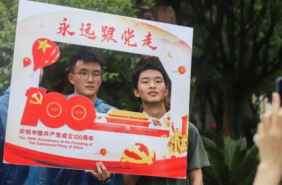 来自经管学院的参赛队伍晨旭队感悟到:“百年征程波澜壮阔,百年初心历久弥坚。今天我们地大学子在雨中重温光荣岁月,探寻百年历程,百年党旗红,笑唱南湖风。大雨挡不住青年的朝气与激情,我们晨旭队徜徉于党史知识的海洋,共唱红色歌曲表达对党的拥护和热爱;旗手前引路,亿众续长征。我们将继承革命先辈精神,为实现中华民族伟大复兴的中国梦不懈奋斗。吾党百年,青春焕发!”