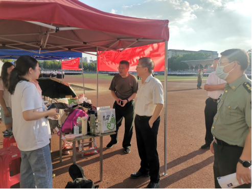 9月18日下午,校长王焰新院士来到南望山校区西区军训场,看望慰问万象城娱乐awc线路2022级全体新同学。学校办公室、党委武装部等相关人员参加。
