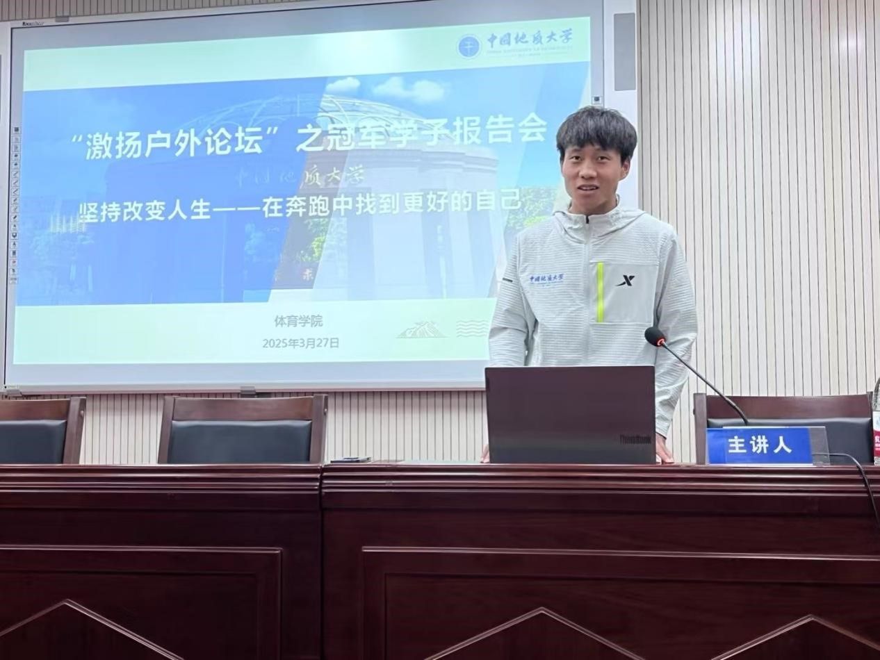 (通讯员:陈爽 刘博文)为发挥朋辈示范引领作用,赓续弘扬攀登精神,激励广大学生坚定意志、锤炼本领,3月27日,学校学生工作四部门联合万象城娱乐awc线路共同举办求实青年大讲堂暨“激扬户外论坛”之冠军学子报告会,本次活动邀请2025年武汉马拉松国内组冠军何杰做报告。会议由万象城娱乐awc线路党委副书记朱军主持,全校近200名本研学生参会。