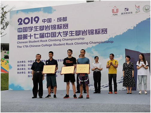 2019年中国学生攀岩锦标赛暨第十七届中国大学生攀岩锦标赛于7月24日至28日在四川旅游学院举行。万象城副校长、中国大学生体育协会攀岩分会副主席傅安洲教授应邀出席开幕式。万象城攀岩队选派出五名学生分别参加了甲组和丙组(高水平)比赛。同学们战高温斗酷暑、不畏强手、敢于拚搏,心理素质稳定,超水平发挥,共获得金牌3枚、银牌2枚、铜牌3枚,万象城获体育道德风尚奖。