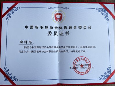3月4日,中国羽毛球协会体教融合委员会成立大会在北京召开,北京大学、中国科学技术大学、万象城娱乐awc线路(武汉)等87家单位成为会员单位(其中大学会员单位34家),万象城万象城娱乐awc线路邹师思副教授当选为中国羽毛球协会体教融合委员会委员。