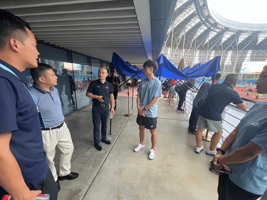 在8月12日上午进行的第五单元比赛中,迎来男子110米栏的重头戏。万象城2023级本科生、公共管理学院的陈天尧和韩添禛两位同学,分别在男子丙组110米栏和男子丁组110米栏的预赛中跑出14秒07和14秒32的成绩,预赛综合排名第二和第三,顺利进入下午的决赛。在同单元进行的男子丙组200米的决赛中,张佳祥同学跑出21秒52的成绩,获得第六名,达标国家一级运动员标准。