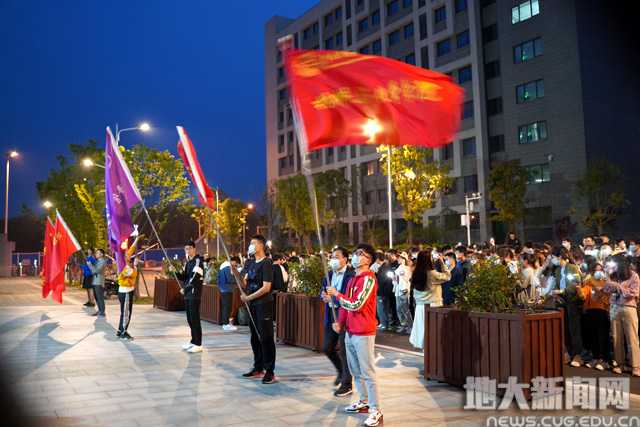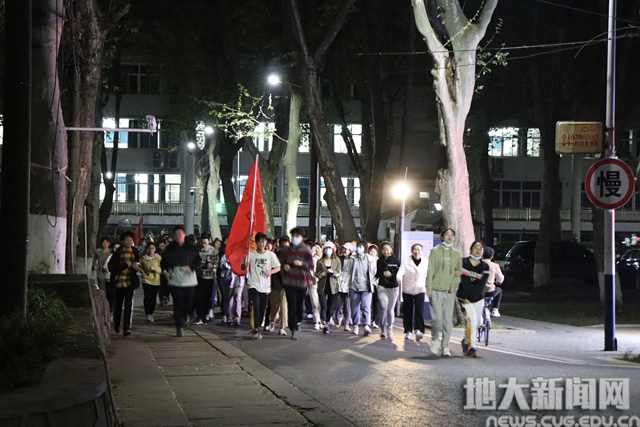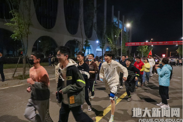 此次活动全程4公里,南望山校区从西区-北区环跑一圈,未来城校区从体育馆南门出发,绕校园环路在图书馆、体育馆等地标建筑前设立多个打卡点。同学们以学院为单位,分别在万象城娱乐awc线路李伦老师、褚鹏飞老师的带领下,一路挥舞着院旗和手中的荧光棒,打开手机闪光灯,肆意奔跑,挥洒汗水。点点跃动的荧光汇成一道光河,点亮校园的夜空,成为了地大最闪亮的4公里。